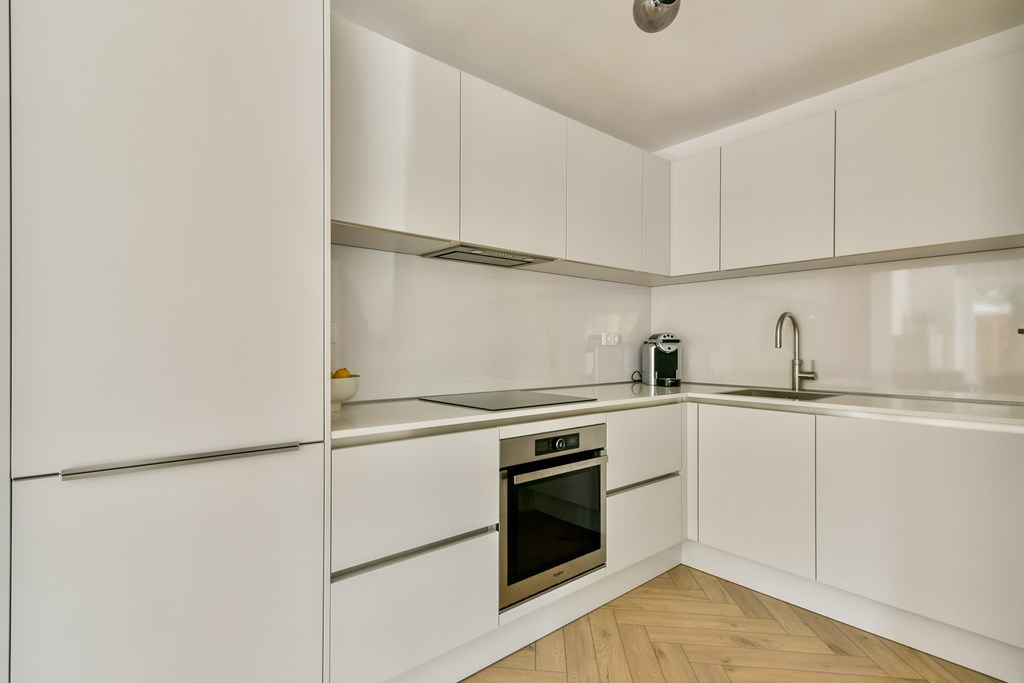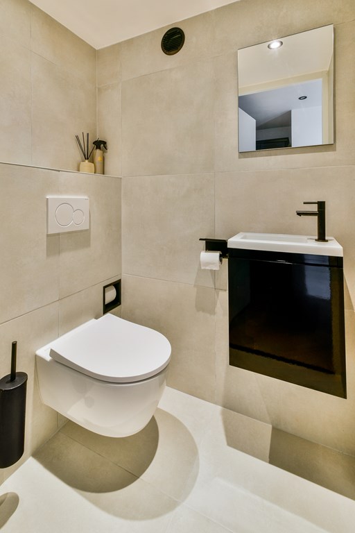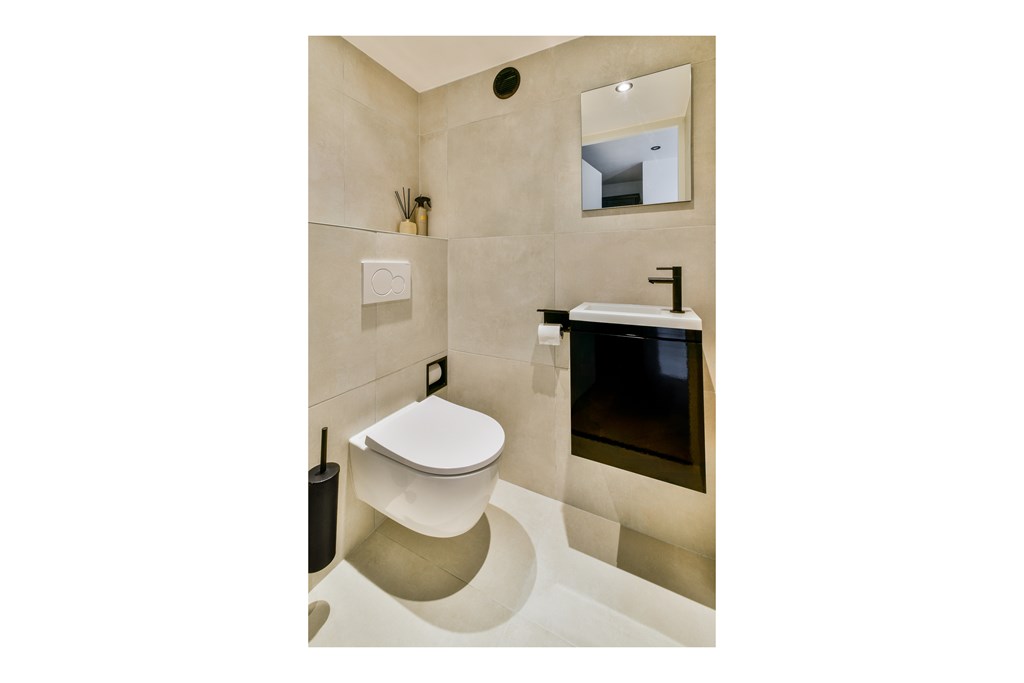 Ground floor: entrance hall with meter cupboard and modern toilet with washbasin. The bright, rectangular living room overlooks the garden and opens to the outside through French doors. From the hall you get entre the elegant white open kitchen, equipped with various built-in appliances and ample storage space. The entire bg floor has a well-functioning underfloor heating system.