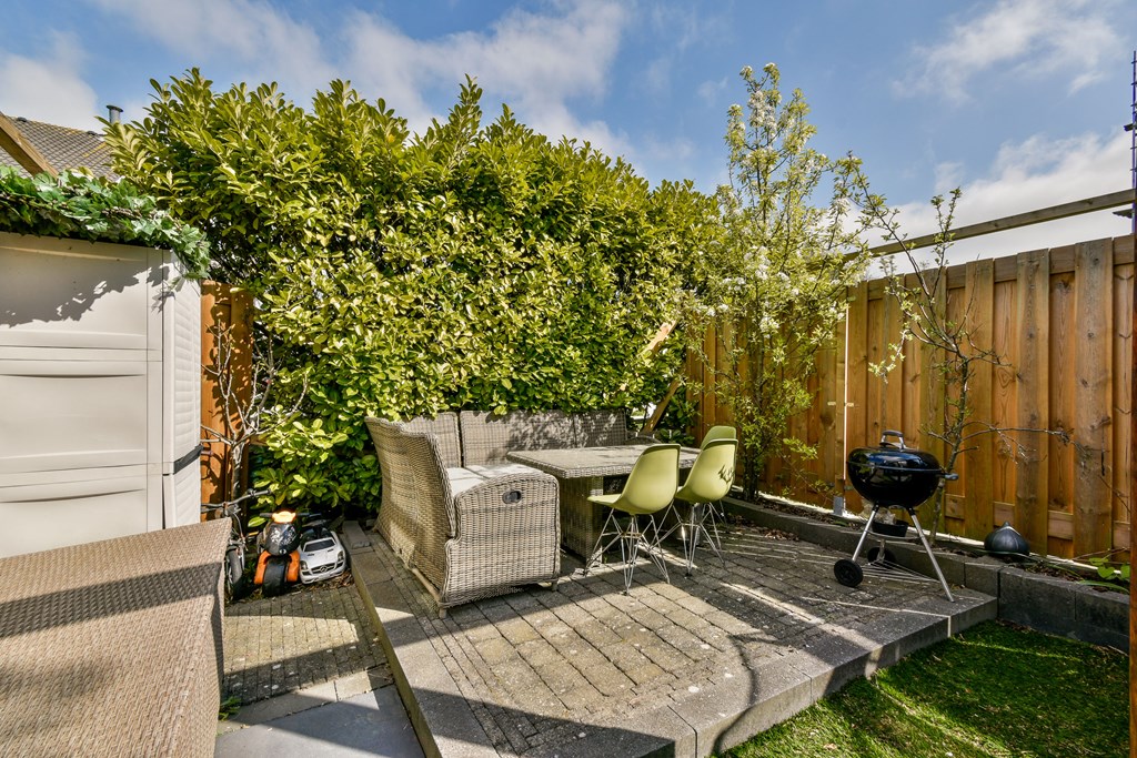De woning is gebouwd met oog voor privacy en leefkwaliteit. De besloten tuin is fraai aangelegd, omsloten door groen en grenst direct aan het water – een perfecte plek om in alle rust van de zon te genieten. Ook het royale dakterras op de bovenste verdieping is een waardevolle toevoeging aan het buitenleven in deze woning.